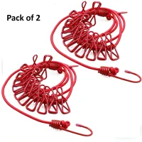 Uni5 Elastic Cloth Drying Rope With 12 Clips Dual Hooks Pack Of 2 – Portable, Stretchable Clothesline For Travel, Balcony, Bathroom Outdoor Use – Durable Rust-Free | ✽ Free Gift available ✽